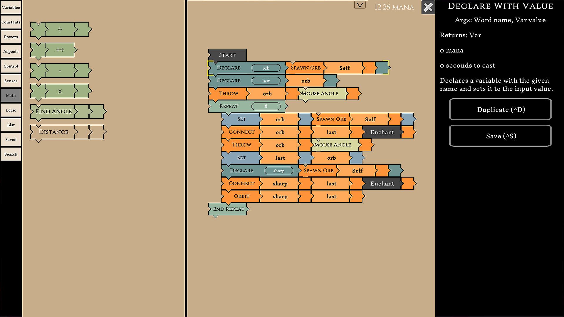 Develop powerful spells using a visual scripting language. Hundreds of meaningfully unique spell combinations let you express yourself and your creativity through the game.