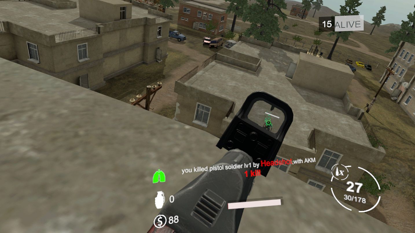 As a desperado, you join in a very thrilling death game for a large amount of money. The game has 100 people involved. And the other 99 people are your enemies. This game takes place on a desert island. On this island, you need to show your very tough attitude for victory. By killing all the enemies with all kinds of weapons, the lone survivor will get a delicious chicken and a large amount of money. Yes! All of this is to fight for the world’s last chicken.