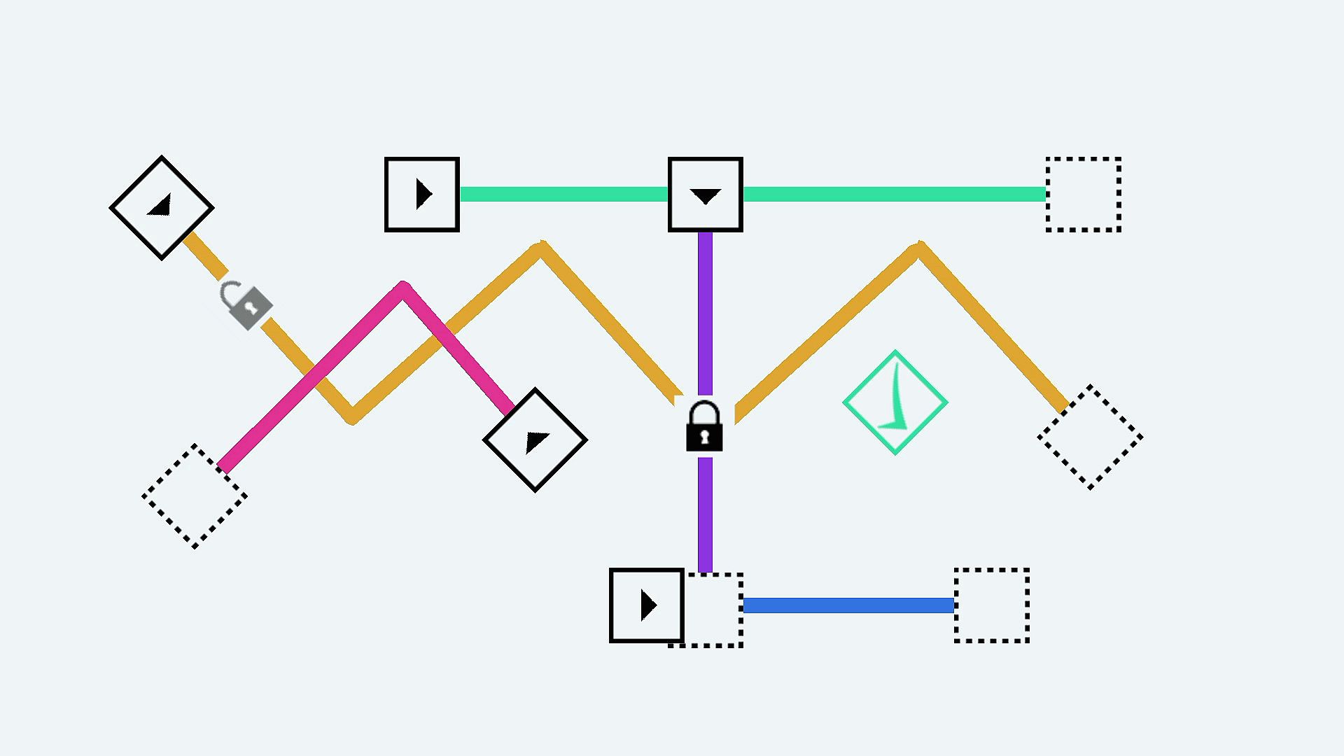 As you progress, new mechanics are introduced, such as cubes that move in pairs, pause nodes that freeze movements, and locks that create new strategic obstacles. Every puzzle is a test of timing and order, ensuring no two levels feel the same. The calming atmospheric soundtrack, composed specifically for the game, enhances the experience and helps keep you relaxed as you solve the increasingly tricky puzzles.