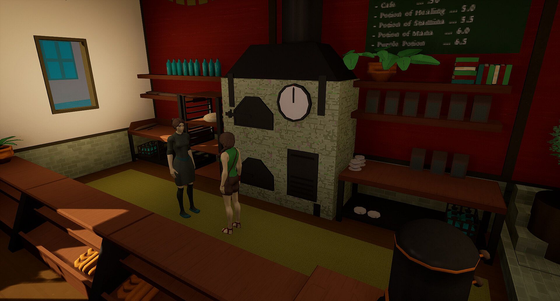Sage manages the storefront - Baking bread, preparing coffee, and mixing potions. Mercury isn't interested in any of that, but does want to fly around on her broom to deliver orders.