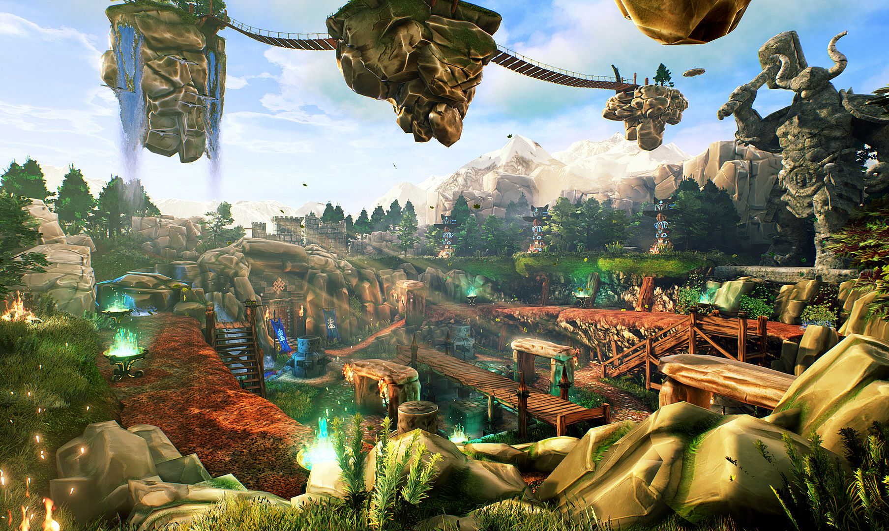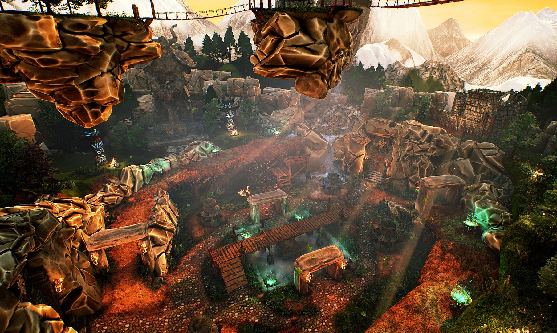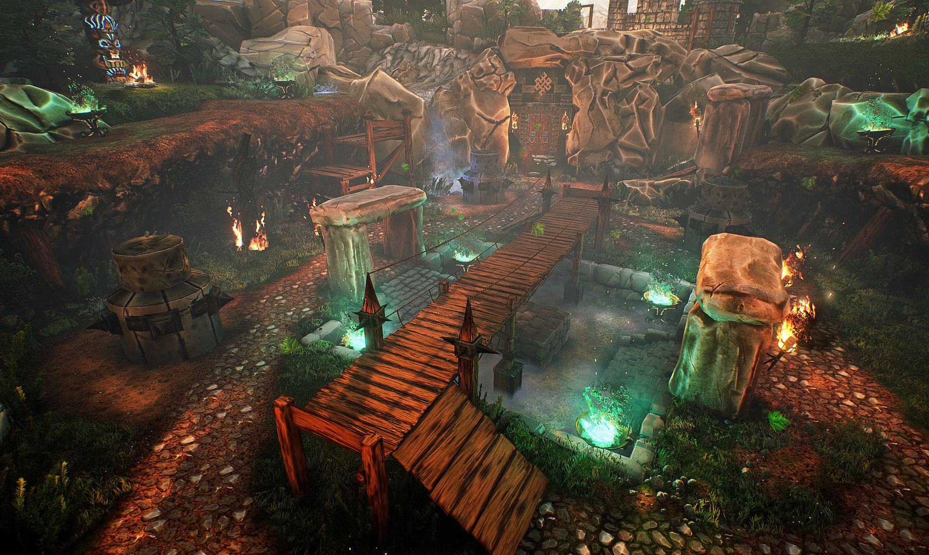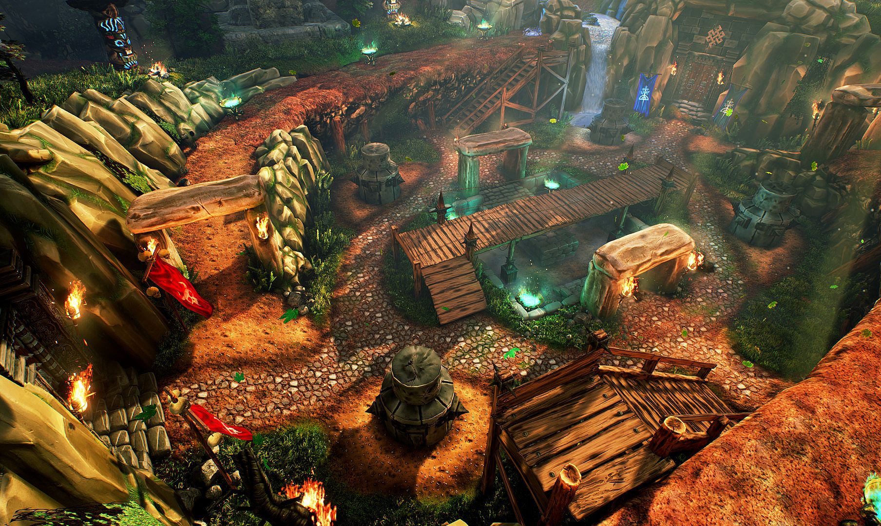There is an interaction with the environment in the form of teleports and places of interest (landslides, lava, waterfalls, lightning, tornado) that block the way and can inflict damage on the opponent.