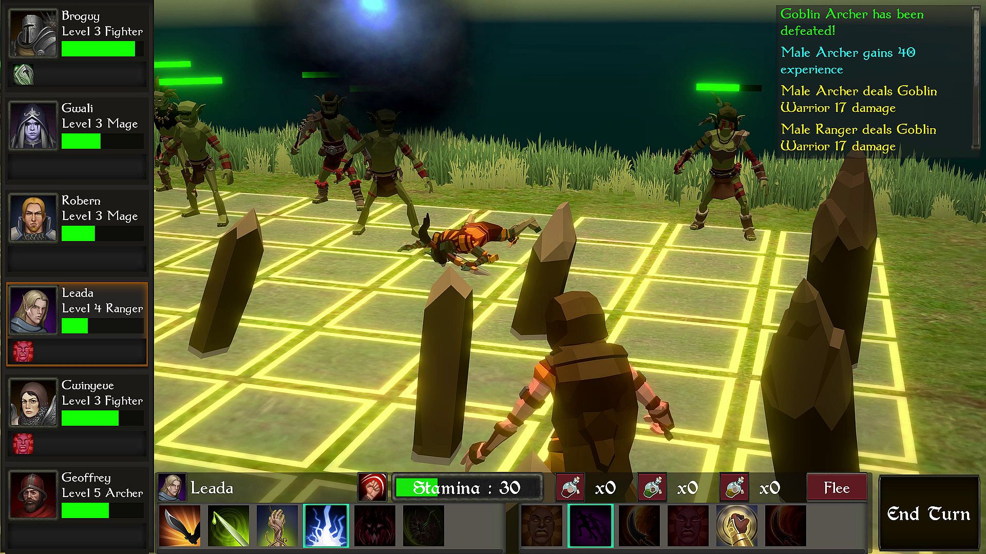 - 6 Different Character Classes (Fighter, Archer, Mage, Knight, Ranger, Cleric)