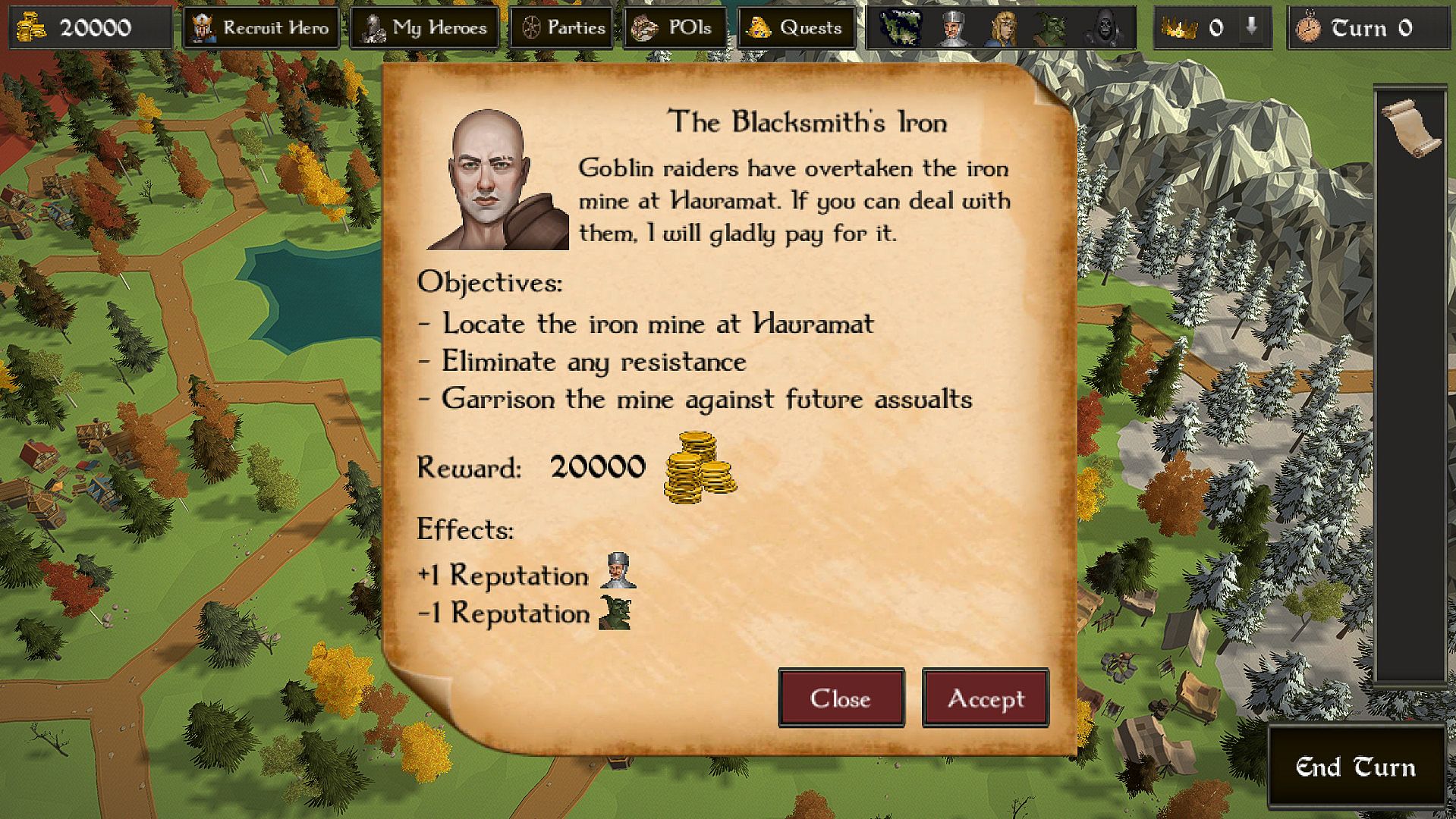 As a rising entrepreneur in the world of fantasy security services, recruit and fully customize your heroes as you send them on various quests. Improve your heroes as they gain experience and level up. Train them in new skills and improve their equipment. Strategically decide which quests to take on and which heroes to send where.