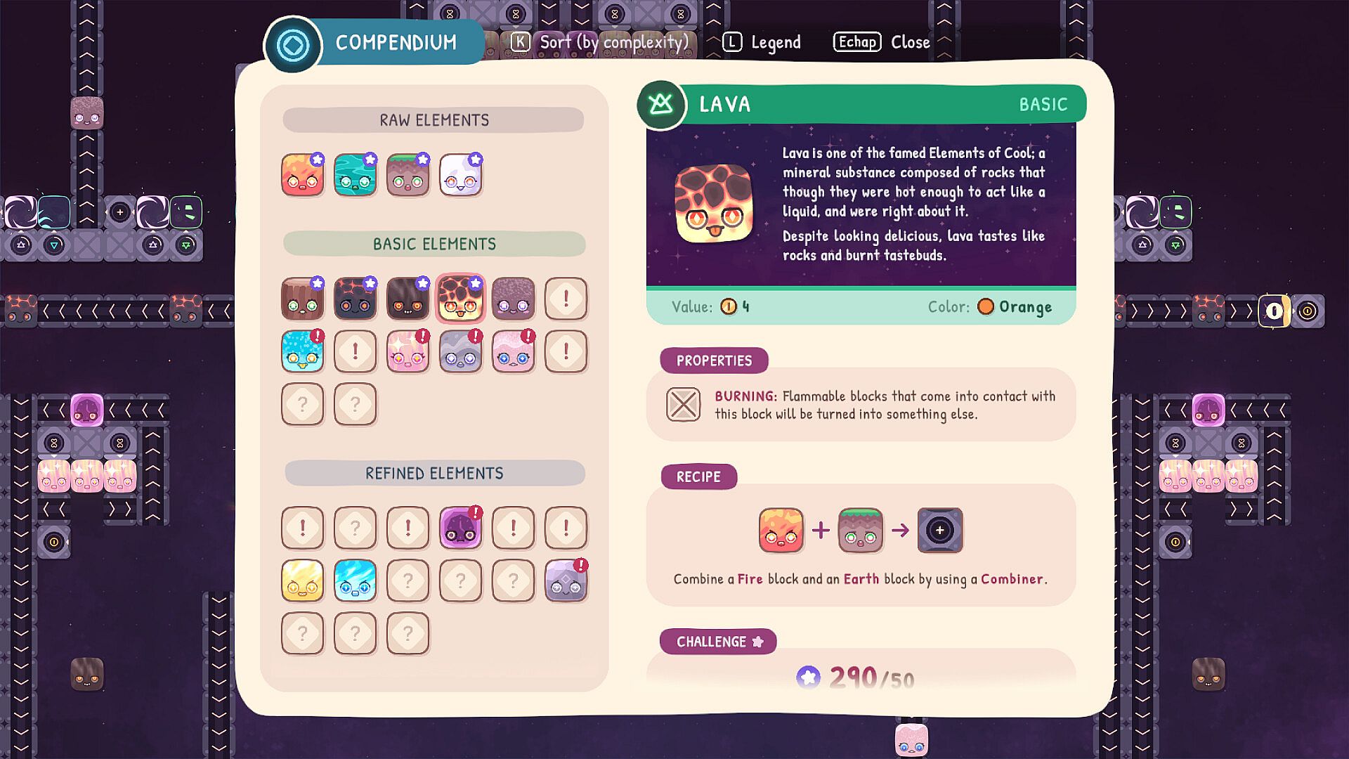 There are dozens of elements to discover, each with their own recipes and special properties. Completing your compendium will be quite the task, but each new element you discover will introduce new possibilities to your factory!
