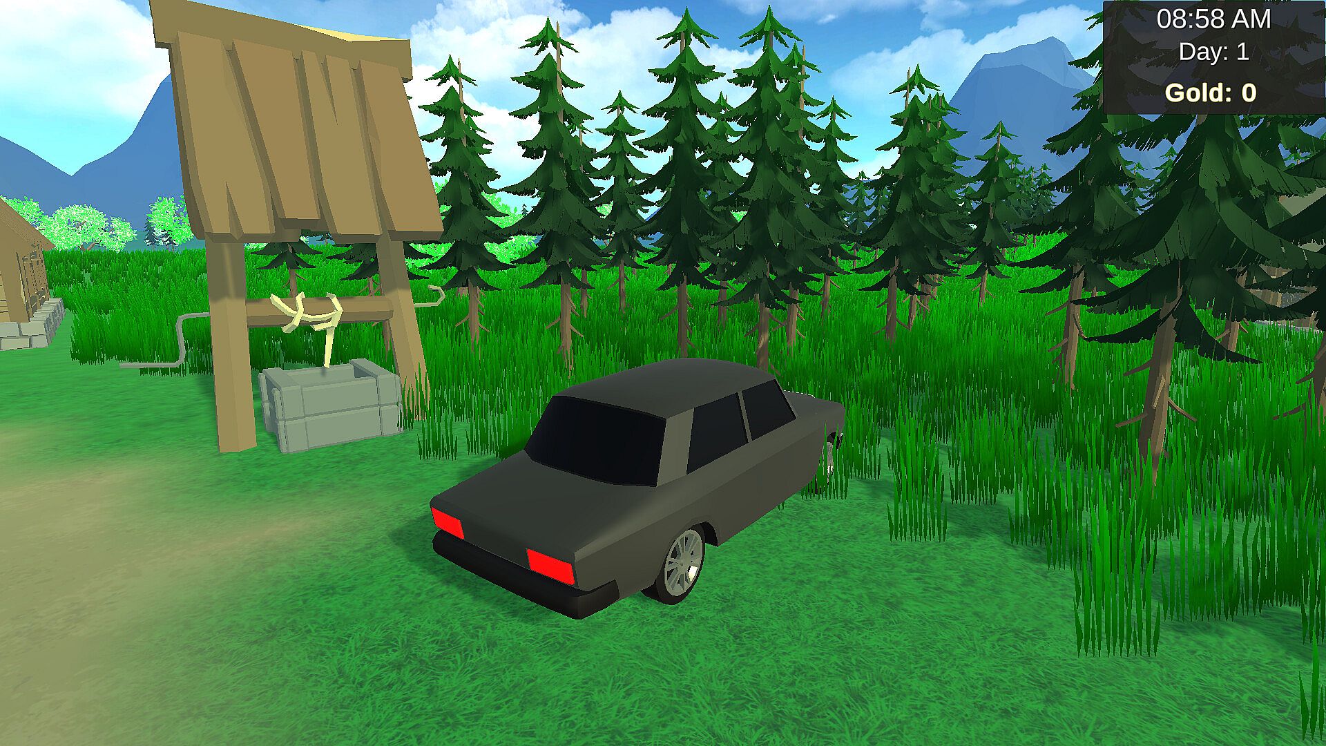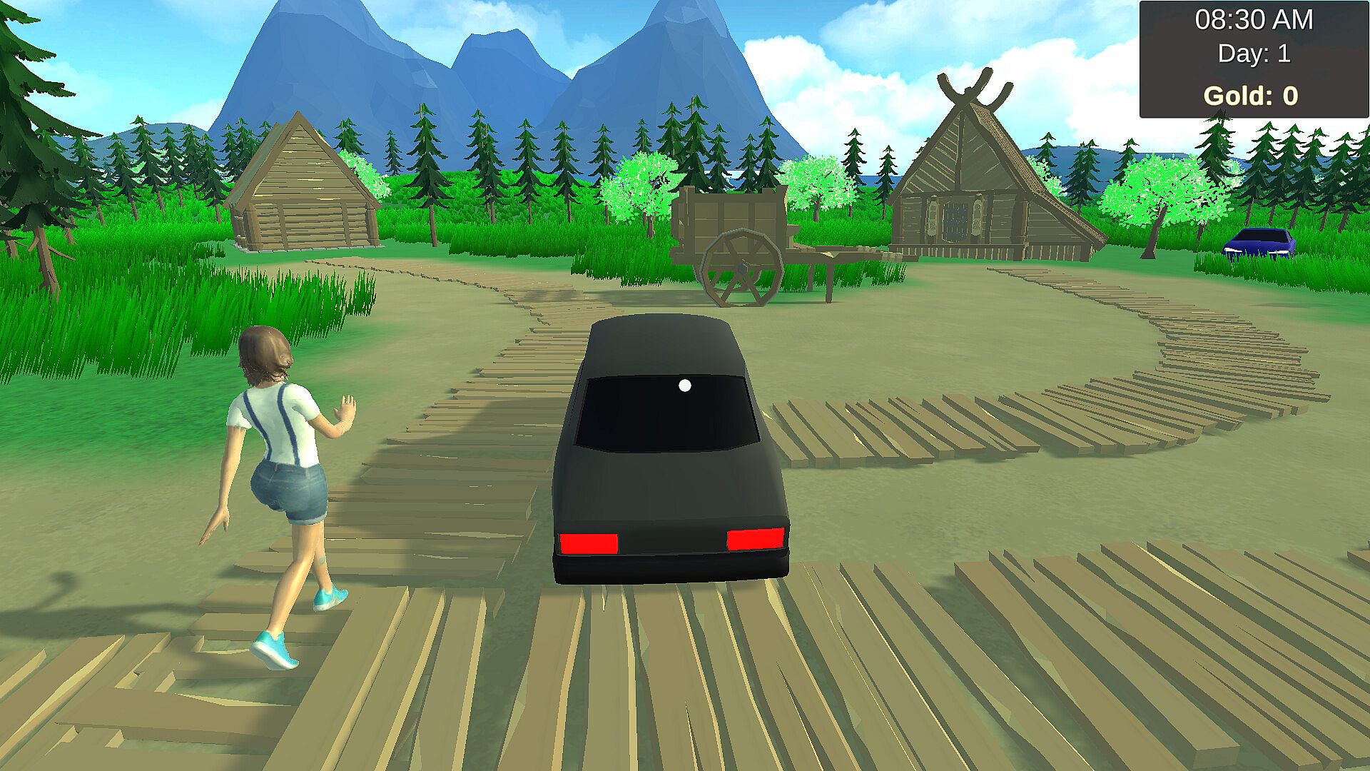 Free Driving – Hop in your car and freely explore your surroundings: lush forests, quiet fields, and the village roads.
