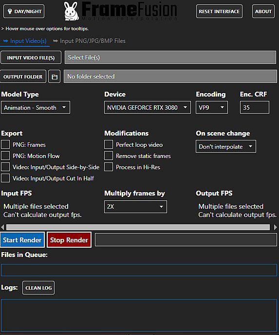 FrameFusion Motion Interpolation improve the framerate of any video, gif or group of images by 2X/4X/8X/16X