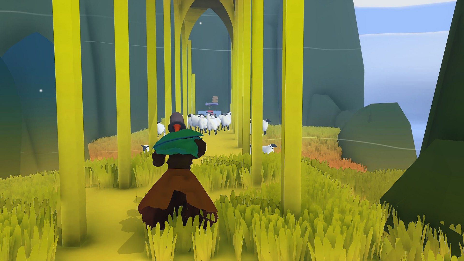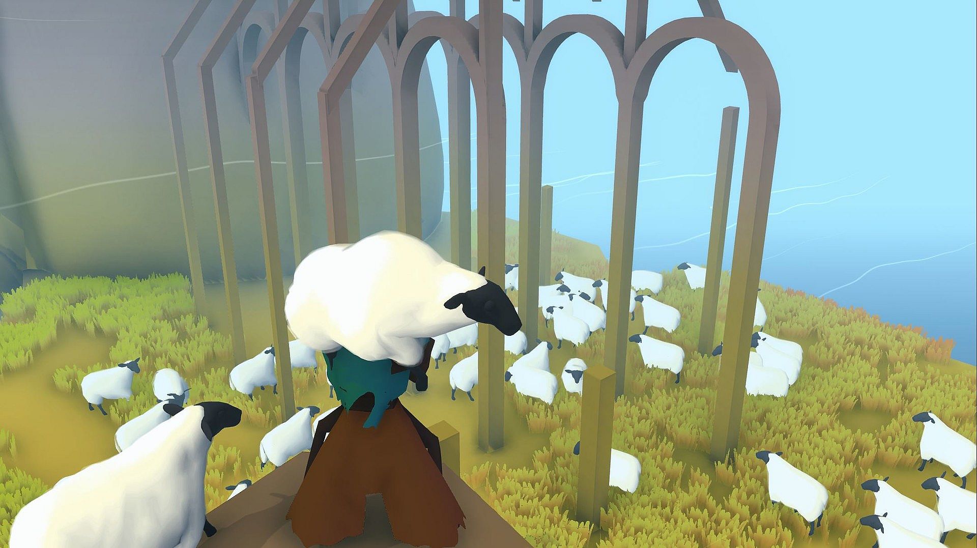 HIRT follows a systemic gameplay approach. This means that the game world is cohesive and built on simple rules and systems. Those lead to a huge amount of possible outcomes and chain reactions. Pushing a dog off an altar with a tornado horn and awakening a stampede? Sure. Sheering wool off your dead Co-Player? Yep. Getting thrown off the island while hooked to a staff? Here you go.HIRT offers: