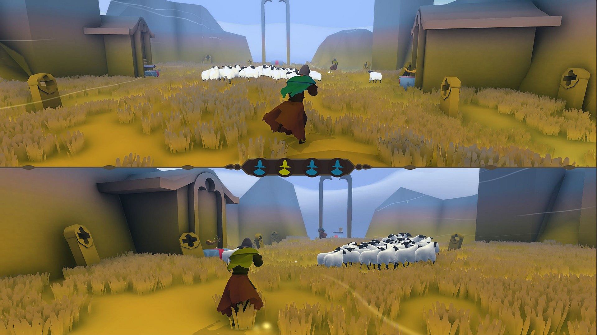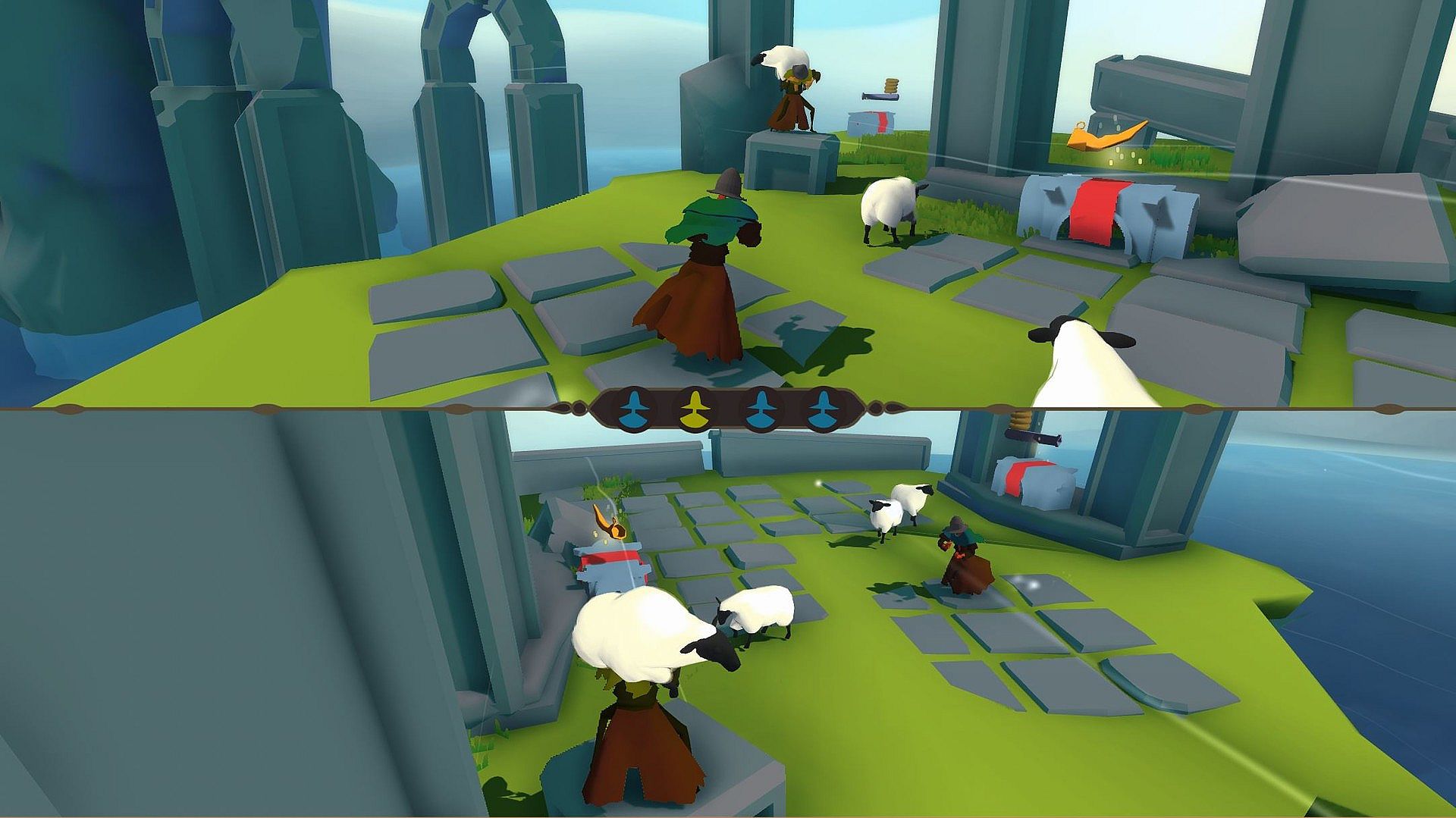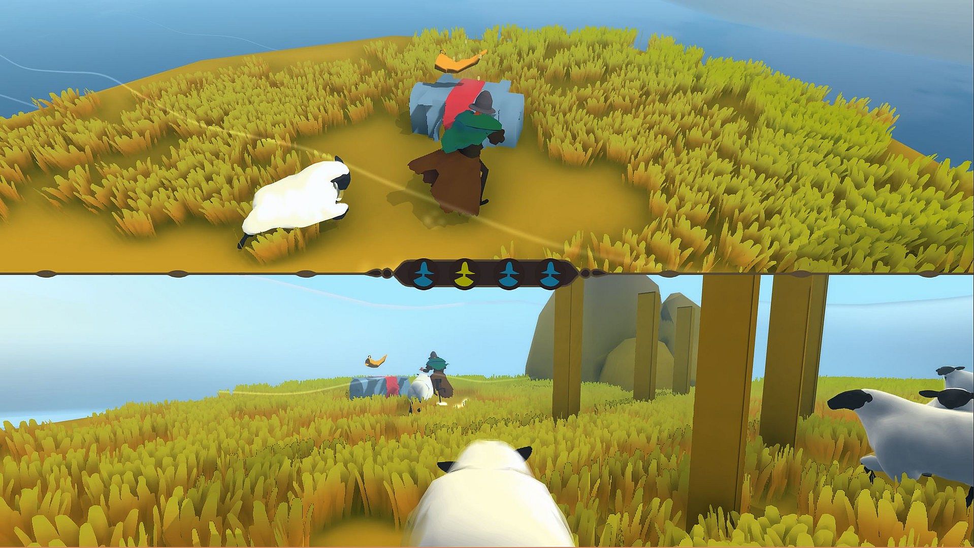 HIRT combines epic sceneries with intense and hectic gameplay mechanics. Players face each other over and over again on a multitude of islands, desperately trying to win back the old remnants and forgotten sanctuaries for their clan. However, the sheep inhabited maps differ in size, available space and layout. Additionally, each map has a HIRT-unique system of item and sheep randomizing, which creates new elements of surprise and mayhem with every round the shepherds fight.