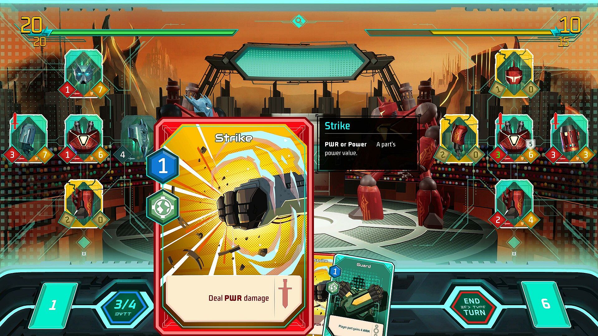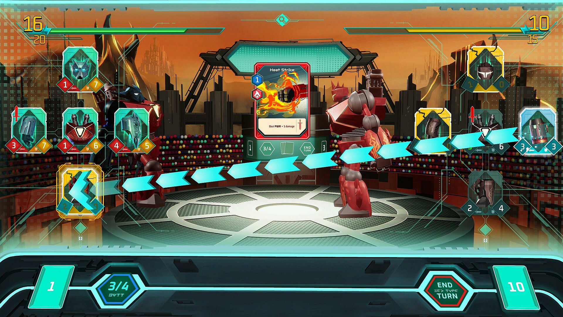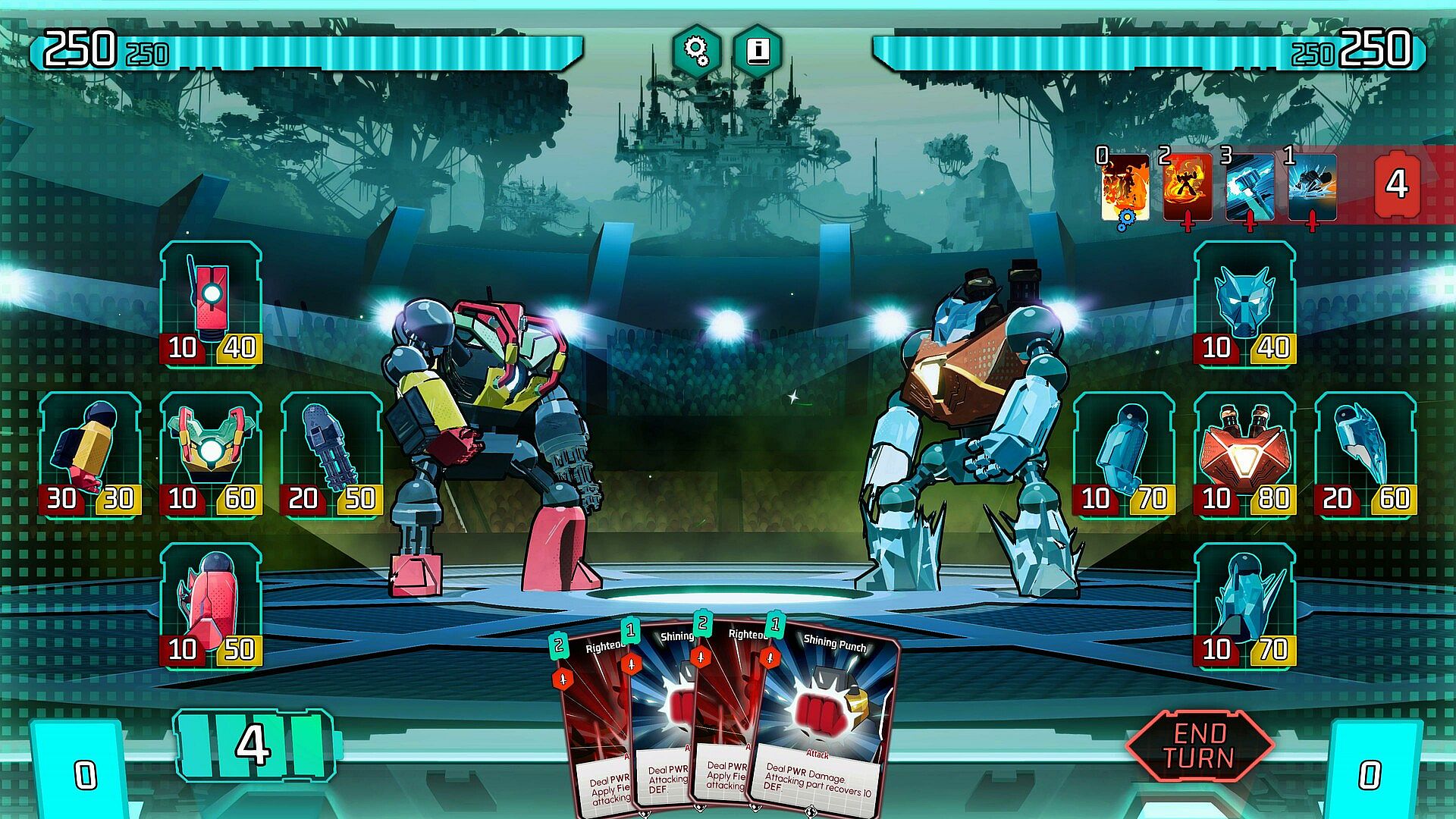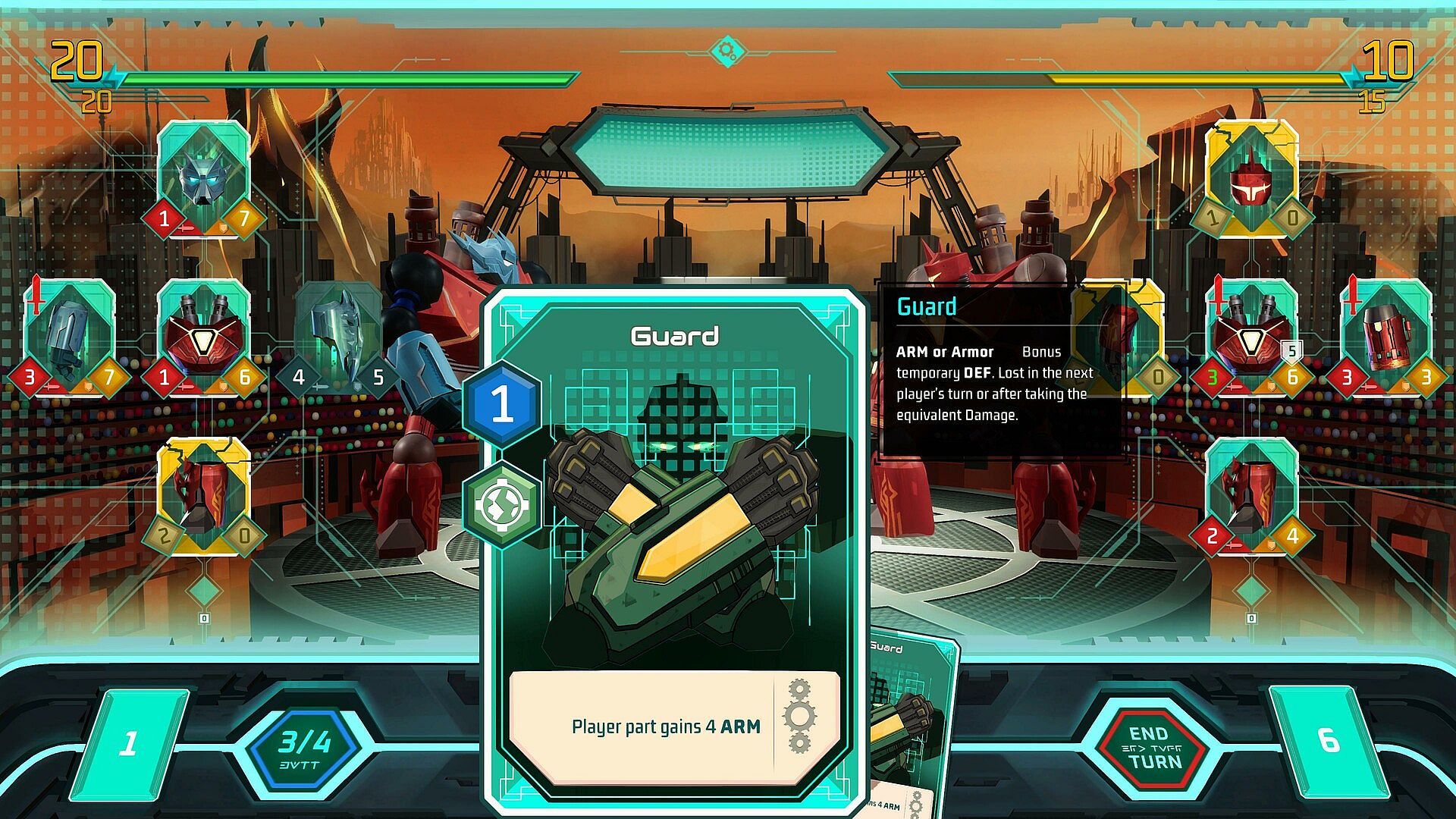 In Megabattle, each victory brings valuable rewards in the form of parts and upgrade cards. Utilize these resources to enhance your deck, making your robot more powerful and resilient. During battles, strategically play cards to improve your parts, attack opponents, and defend against enemy assaults.