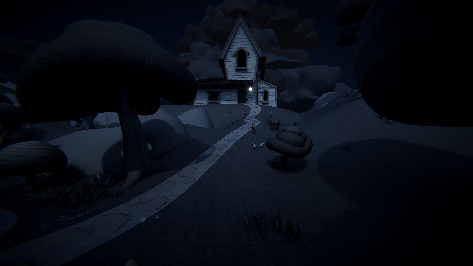 Experience a small atmospheric horror story brought to life in a stylized 3D cartoon look inspired by 1920s animation. The world may look cute, but what you uncover is a haunting scenery.