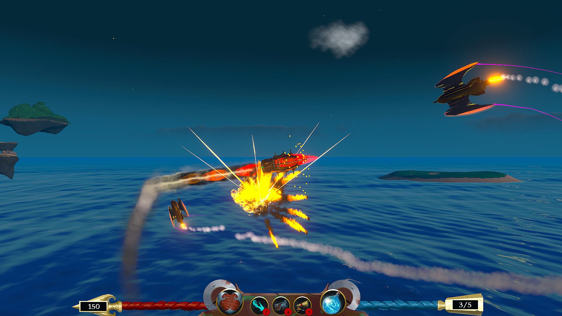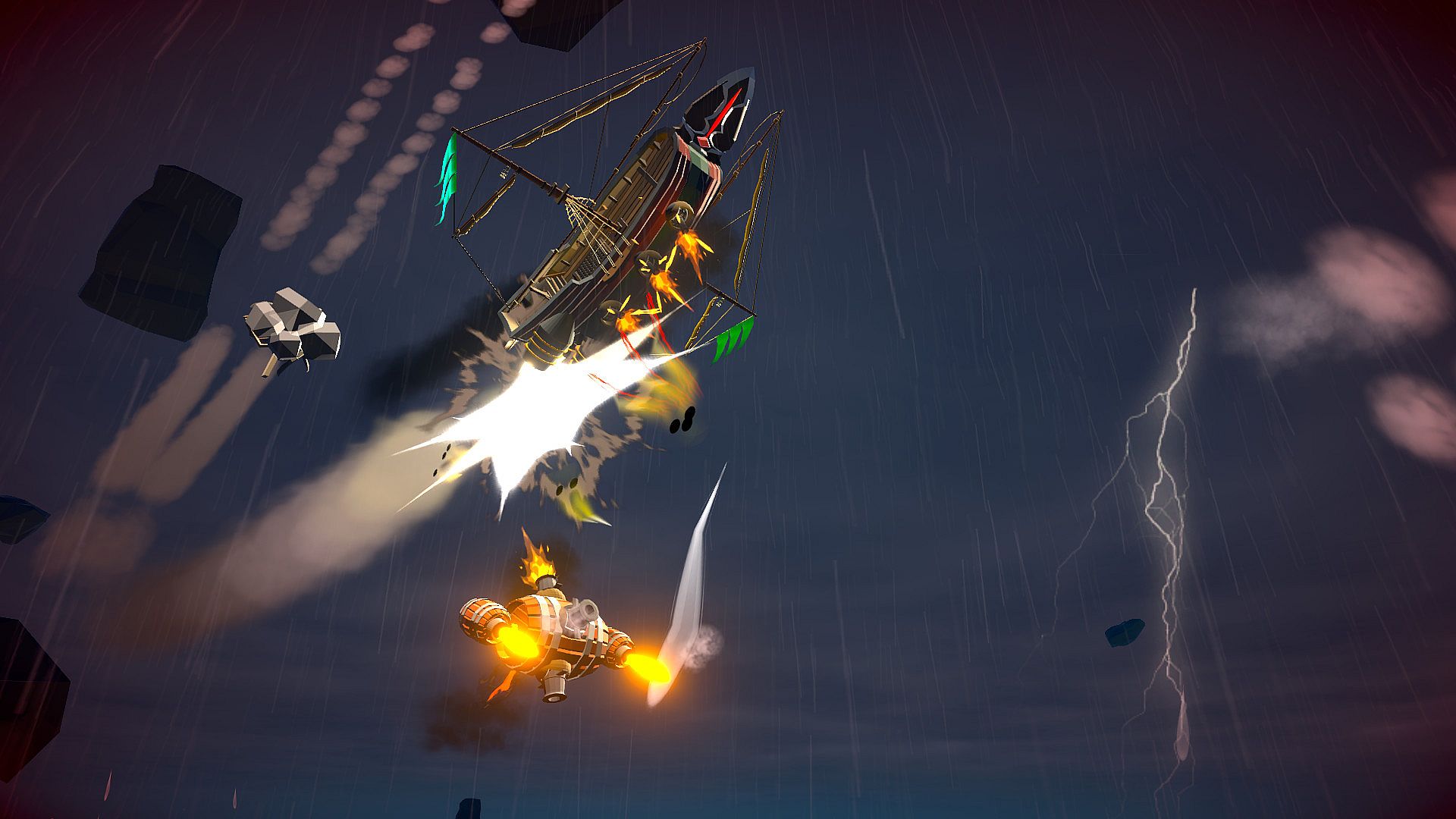 Command a gravity-defying pirate ship through fast-paced aerial combat in this action roguelike simulation. Battle the Dynamic India Company's sky fleets to thwart their plot to doom Earth, advancing via a run-based campaign where defeats unlock persistent abilities and upgrades. Swing with an energy saber on a grappling hook, unleash full-auto cannons with lightning strikes, or mix 16 sailor perks into deadly combos. Customize load-outs from 13 weapons, defenses, and maneuvers, then equip over 60 randomized loot items across varied builds for each run. Train your crew in 8 ship stats for lasting gains, adapting to high-altitude raids, night fights, or stormy skies while bombarding forts and treasure galleons. Indie players who crave build experimentation and persistent progression will dominate these 1650 skies on PC.