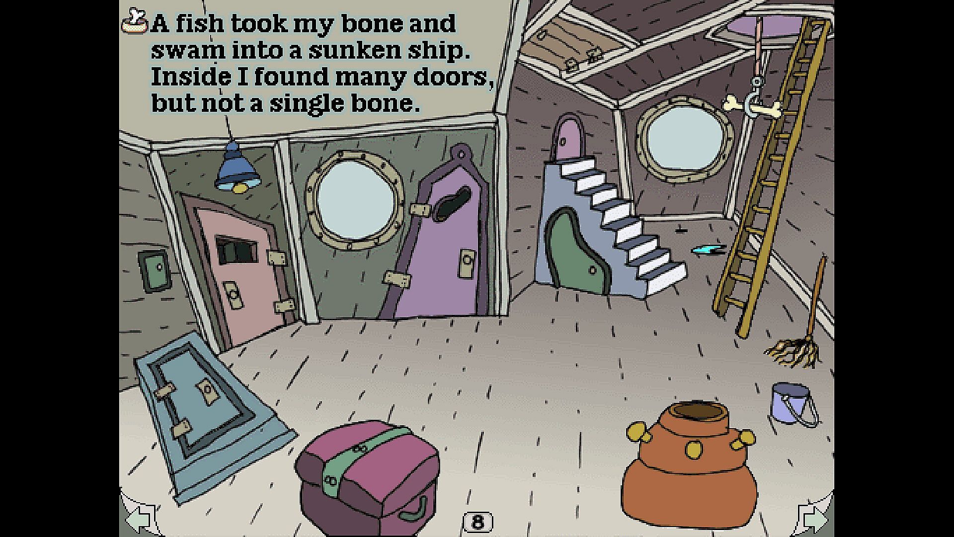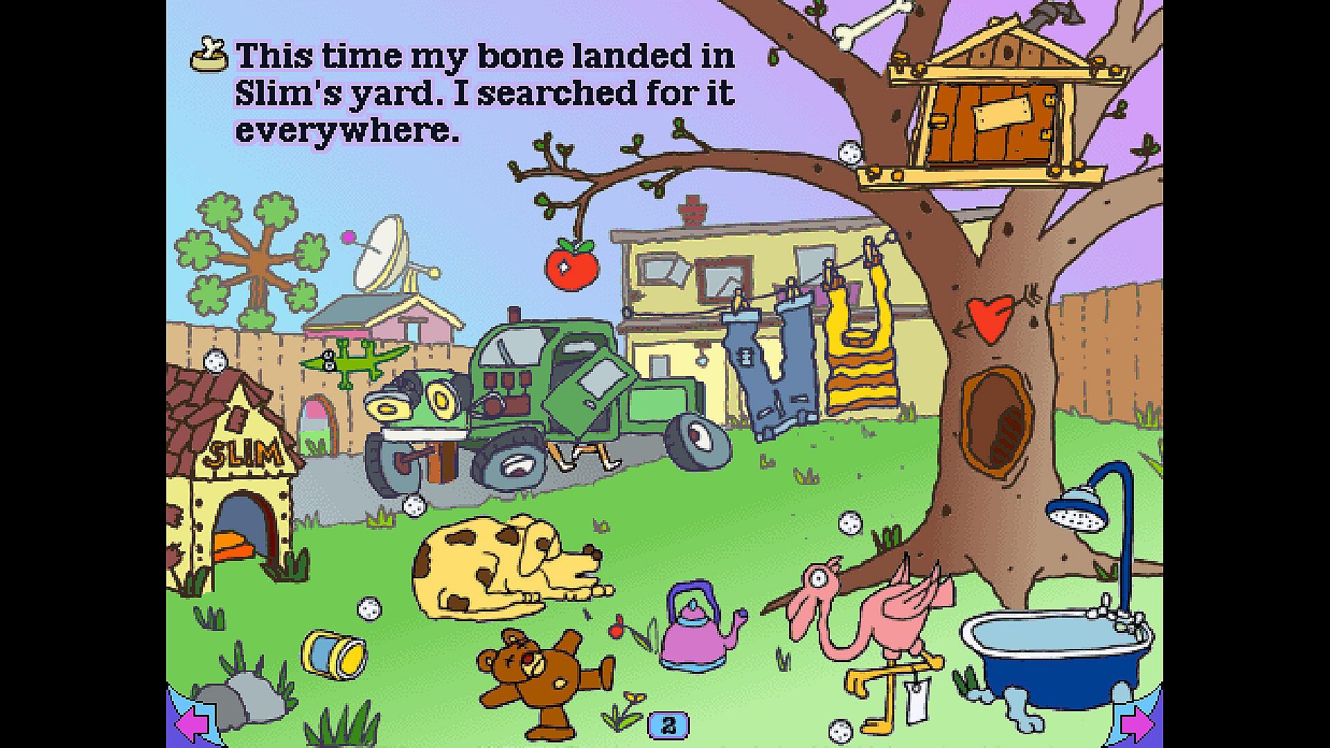 Ruff's Bone centers around a day in the life of Ruff, as he anticipates his weekly routine of fetching his trainer's bone. When the bone is tossed over the fence into their neighbor鈥檚 yard, Ruff goes on a hunt to find it. The journey of course does not go as expected, and Ruff finds himself chasing the bone into the most unlikely of places! Can you help Ruff recover the bone and make it home?