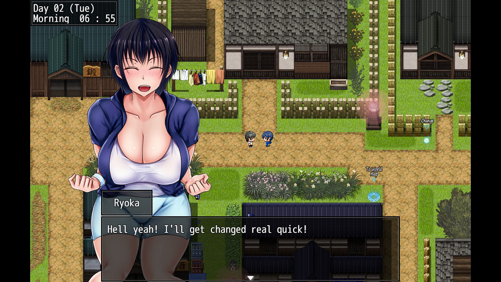 Explore a rural Japanese town, enjoying various activities either alone or with Ryoka. Through fun minigames, try bug-catching, watermelon-splitting, martial arts, part-time jobs, and collecting all the prizes from an old-timey gacha machine.