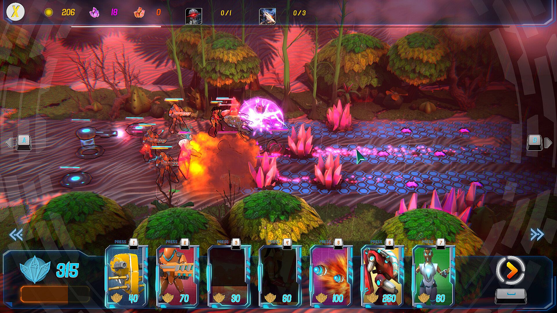 This completely unique gaming experience, inspired by classics like StarCraft and Plants Vs. Zombies, takes these concepts to a whole new level in a vibrant sci-fi adventure featuring RTS-lite mechanics, an innovative Reverse Tower Defense system, and 2.5D action, accompanied by a deep narrative with multiple endings where your moral choices will bring you closer or further from the true ending.