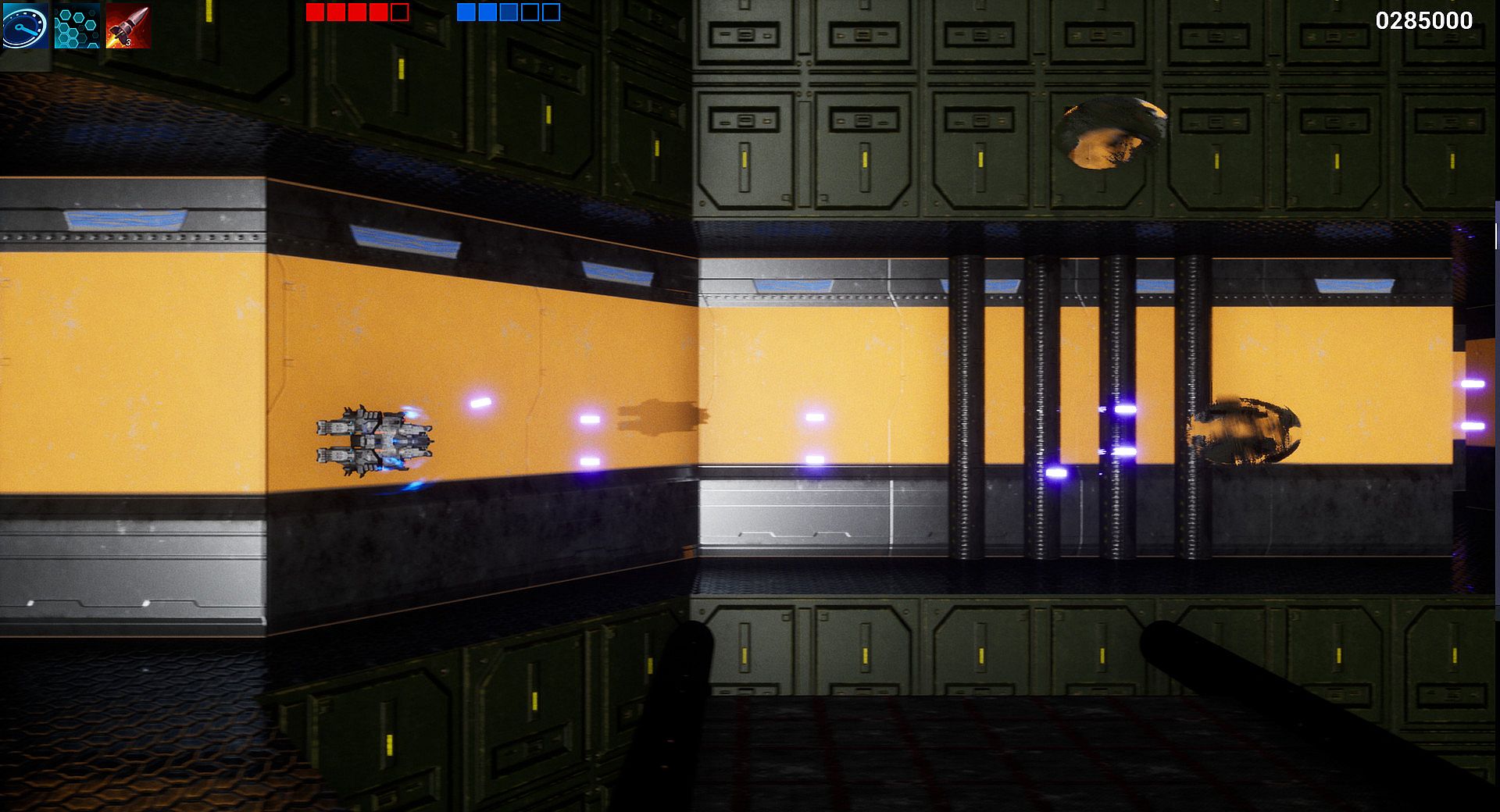 A classic side-scrolling shoot麓em up returns in a new look. Powered by the Unreal Engine, this 2.5D action scroller puts you in control of the IAV, the first interstellar attack vessel built by humans. The human race is under attack. A huge alien vessel is approaching our solar system fast and you need to stand against them. Fight the aliens in ten unique levels, get deeper into the alien ship and find out what drives the alien forces from within. Active abilities, such as time dilation (bullet-mode), cloak and homing missiles help to defeat even the cruelest enemies. Research new alien technology and improve your ship to get ready for bigger and stronger enemies. Once you defeat the final enemy, play again on a harder difficulty... new technology and more enemies await on each replay.