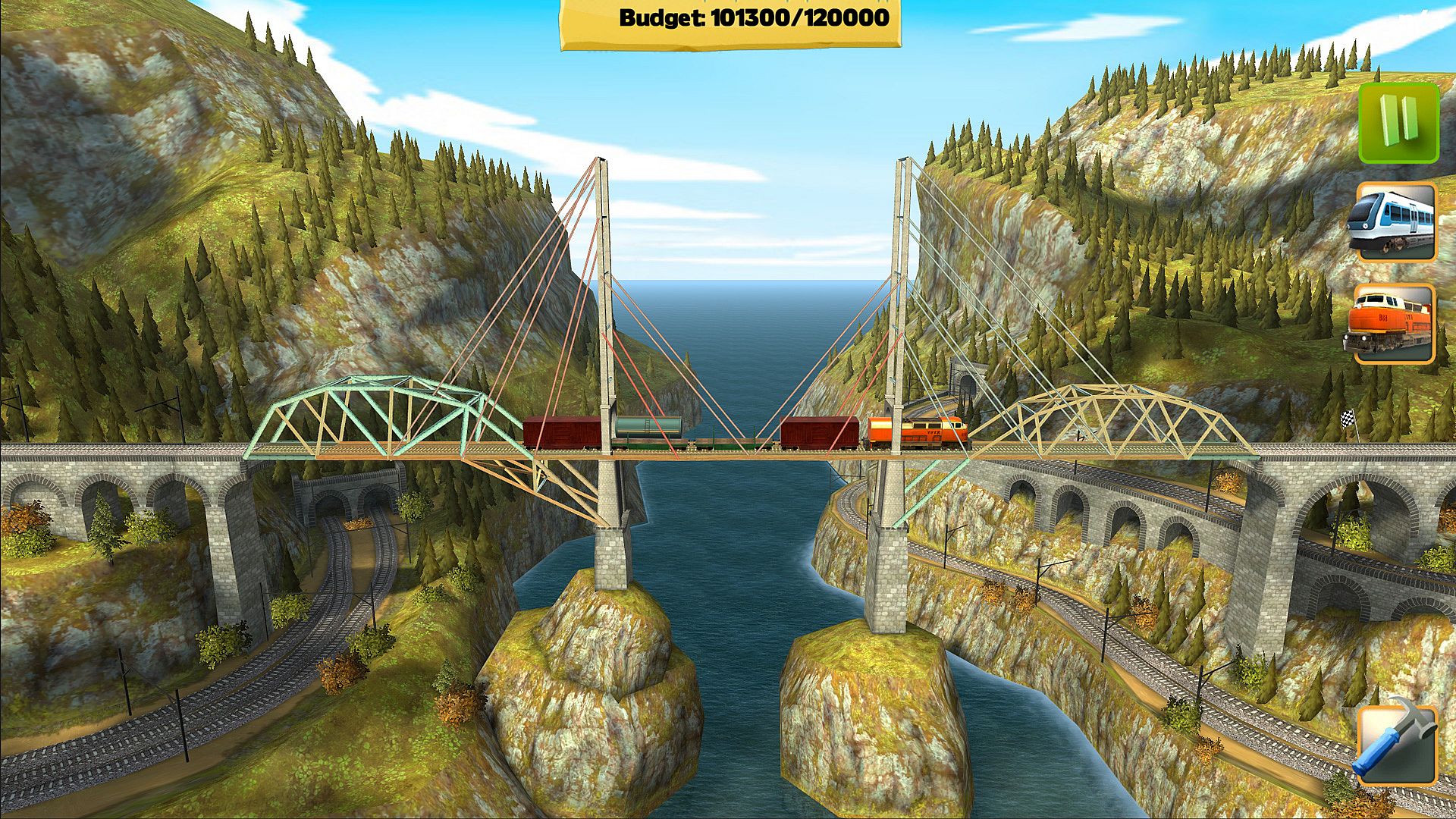 Build bridges to handle commuter trains and heavy freight trains across the Choonited Kingdom island group. This indie simulation expansion delivers 18 levels spread over three islands, where you construct sturdy spans amid picturesque mountains and ravines. The casual gameplay challenges you to support massive vehicle weights in beautifully designed landscapes. Railroad fans revel in the new scenery and engineering tests. Every level demands precise builds that endure the trains' loads. Perfect for simulation players who enjoy methodical construction puzzles.