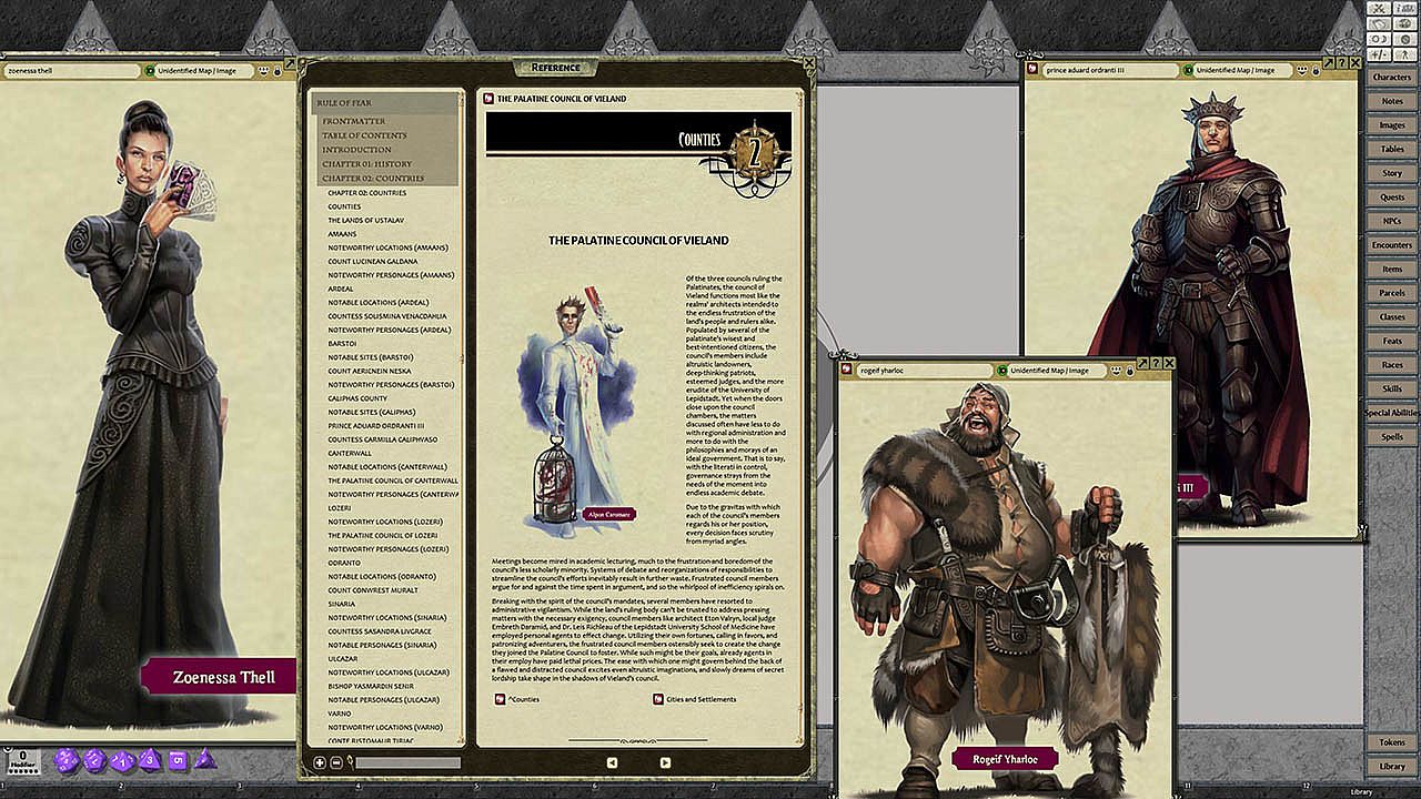 • A complete overview of 13 adventure-packed counties, from the ghost-haunted wastelands of Virlych to the bustling ports of Caliphas, including detailed descriptions of significant locations, notable personages, and the rulers of each region