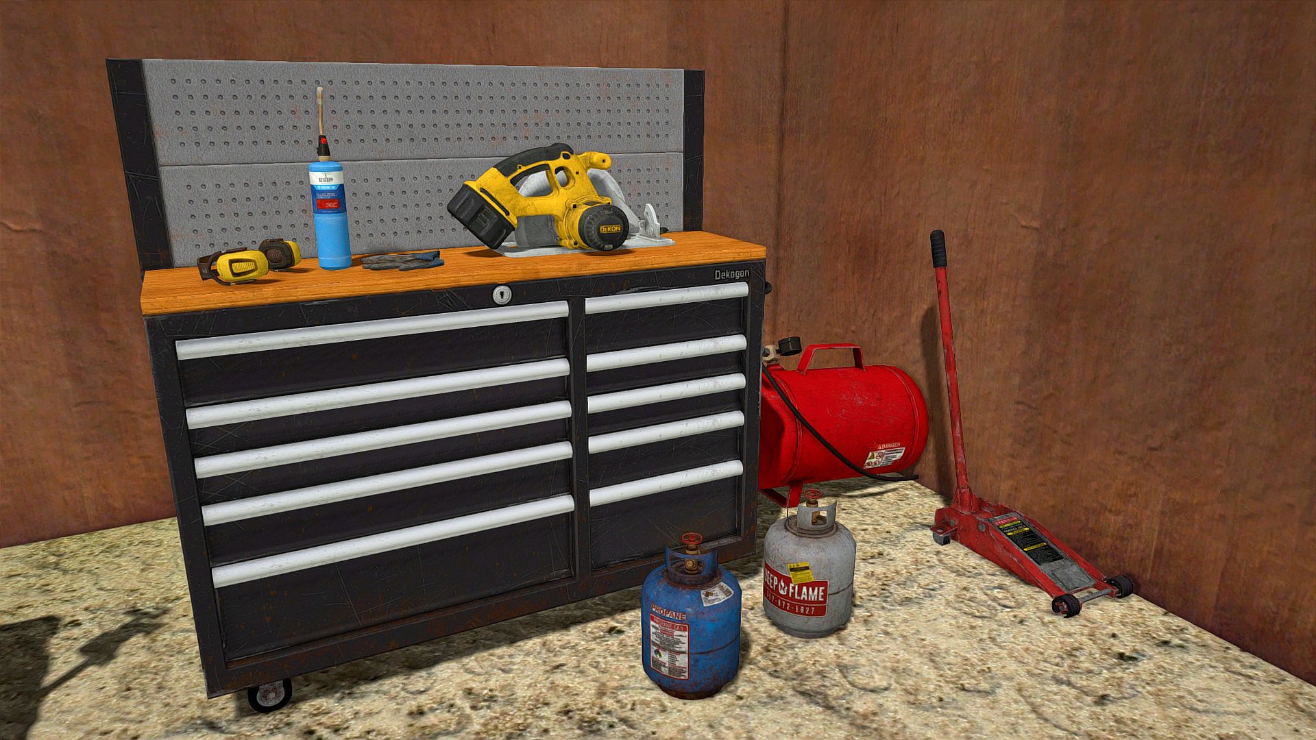 GameGuru - Tool Shed Pack delivers over a hundred detailed objects to add realistic tool shed elements to your game levels. Builders place items like chainsaws, lawnmowers, toolboxes, workbenches, and shelves alongside everyday gear such as propane tanks, spray cans, and trash cans. This game development asset collection equips creators with precise props for authentic workshop scenes. Game designers and modelers use these utilities in animation and design workflows on PC. The pack supports education in software training by providing hands-on resources for level building. It fits developers crafting detailed environments with functional tool-themed assets.