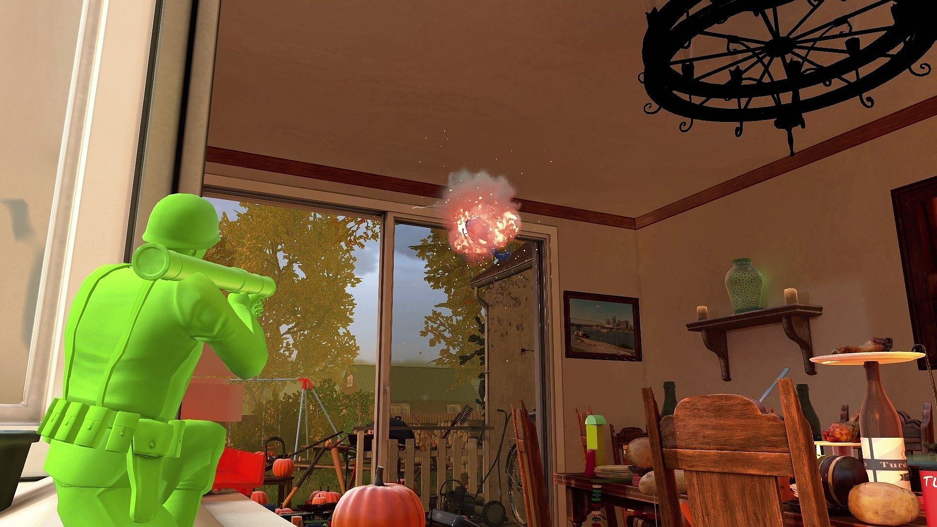 • Pool Party - combat around the swimming pool. And IN the swimming pool - since when do toy soldiers need to breathe?