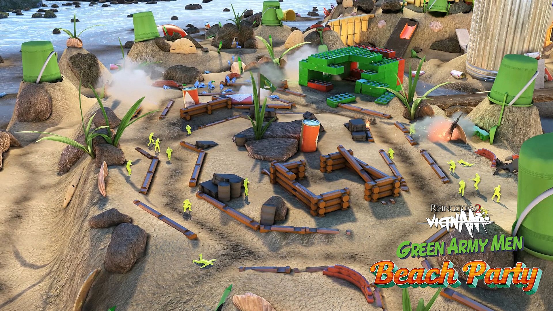 Toy soldiers clash in backyard brawls, pool dives, beach skirmishes, and holiday havoc in this action strategy simulation. Players wield green and blue plastic weapons like 5.56mm assault rifles, .45 pistols, 7.62mm sniper rifles, machineguns, shotguns, grenade launchers, flamethrowers, and explosives across four maps. No fall damage lets troops leap from helicopters, while any class pilots simplified choppers and calls in artillery, mortars, or napalm. This massively multiplayer total conversion runs inside the Rising Storm 2: Vietnam client on PC. Fight through sandcastles, garden tools, beer cans, and pool toys without needing air for underwater combat. Fans of squad-based tactical shooters with arcade twists grab the arsenal and jump into toy soldier warfare.