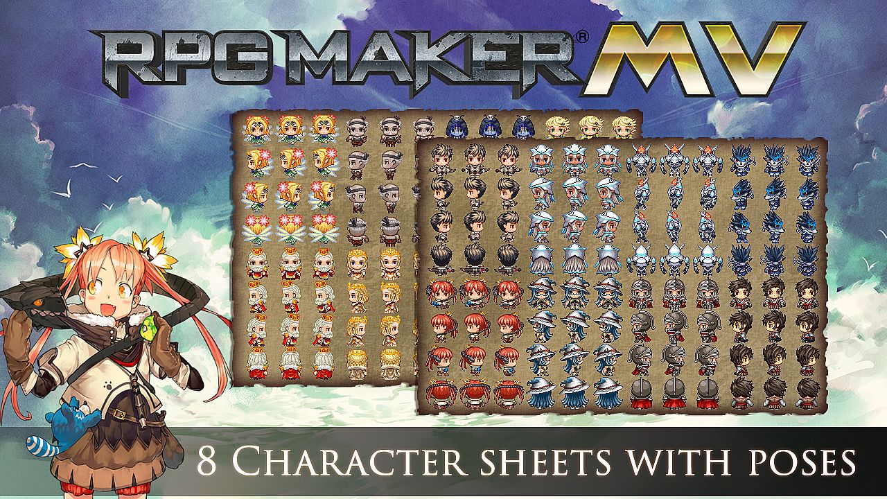 For the first time in RPG Maker history, an official set of resources featuring RPG Maker MV cover art characters is available! Featuring a brand new main party and brimming with bonus material, this pack includes the essentials to build the perfect character party. From witches and warriors to enhanced androids and samurai, our characters are a perfect blend of science, magic and fantasy. Whether you're looking for new heroes, or simply want more variety for your game, Cover Art Characters pack is a must-have!