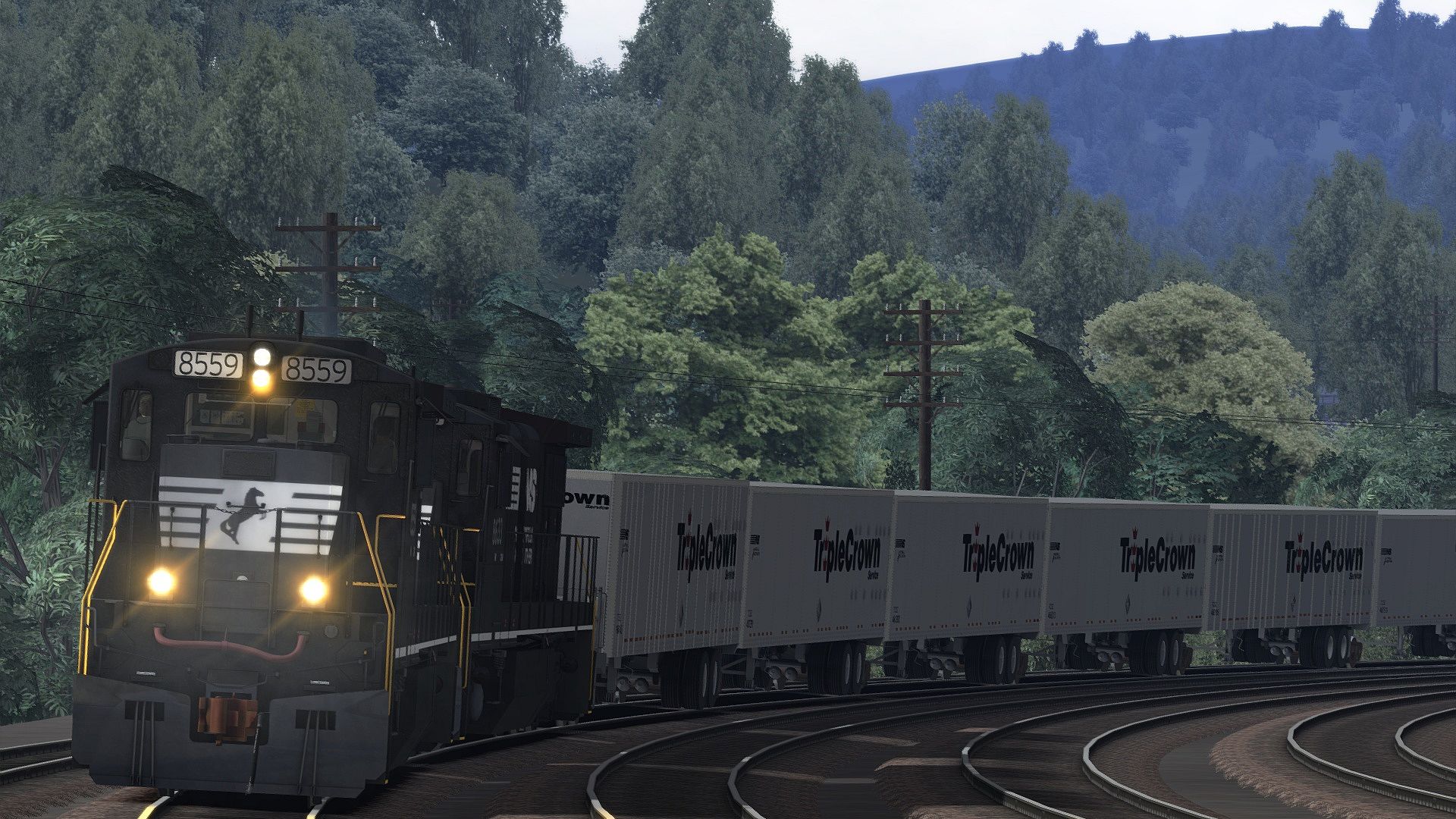 You want to put this big GE diesel to work, so the pack contains four career scenarios on the Train Simulator Horseshoe Curve route (route available separately). Along with the Norfolk Southern C39-8, this pack also includes a range of rolling stock, highlighted by NS’s innovative Triple Crown 53-foot RoadRailers in two variations (smooth-side and ribbed), as well as modern 2-bay covered hoppers in Norfolk & Western and Southern liveries, and a Norfolk Southern 100-ton, three-bay coal hopper.