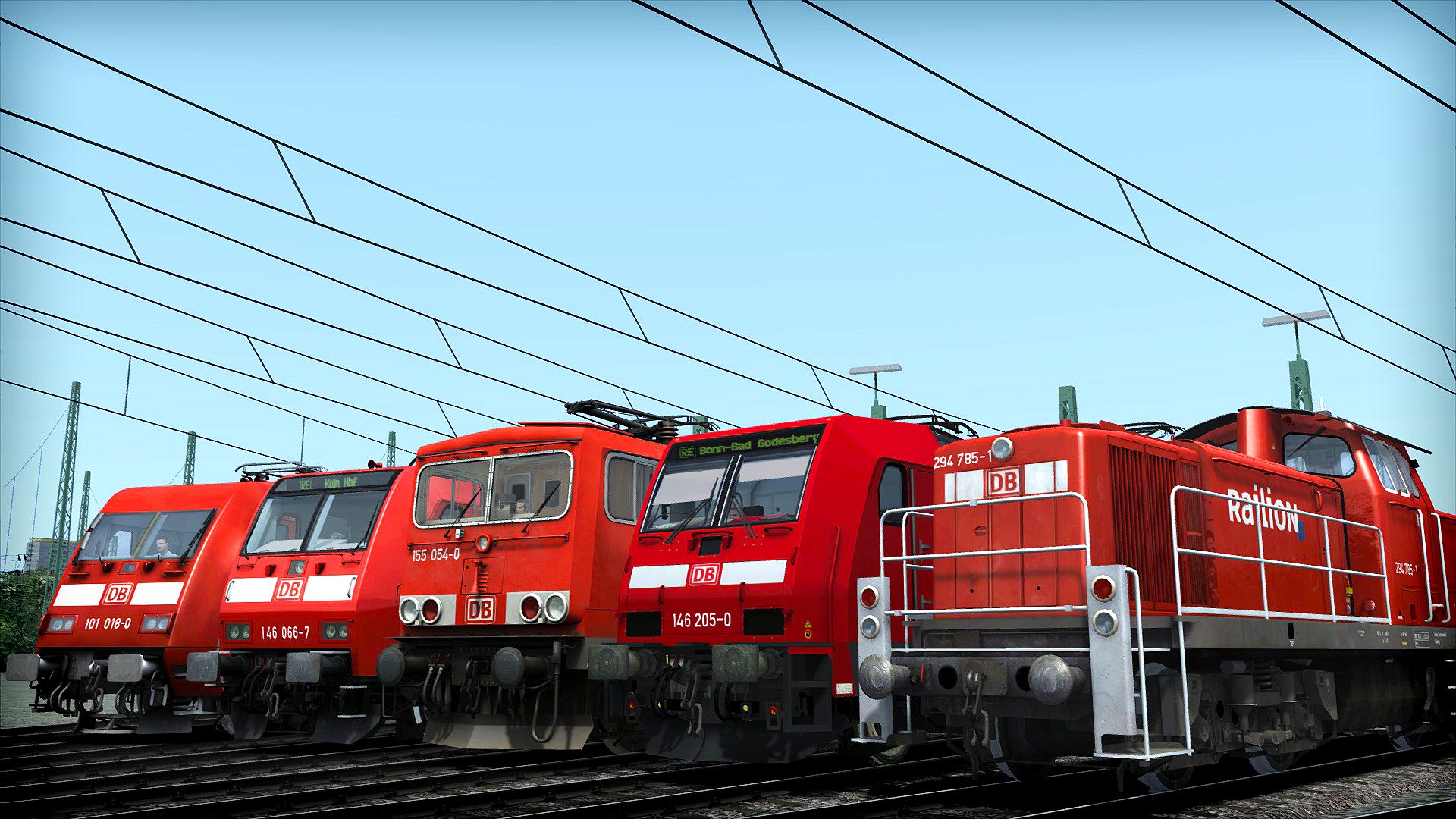 Included with the route is a DB BR 146.0 electric locomotive and Doppelstock (double-decker) coaches forming the RE5 ‘Rhine Express’. A DB BR 294 diesel locomotive with freight wagons and DB BR 101 with passenger coaches also add a variety of services on the route.