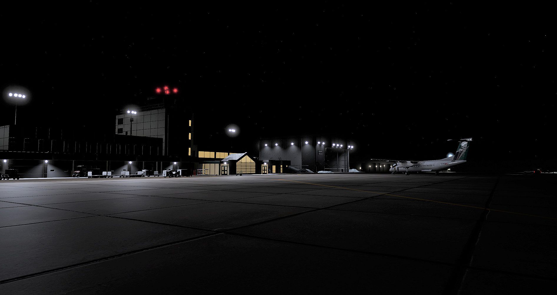 • Custom PBR HD ground textures and markings, including striated runway markings that are used at many Canadian airports, including CYQY