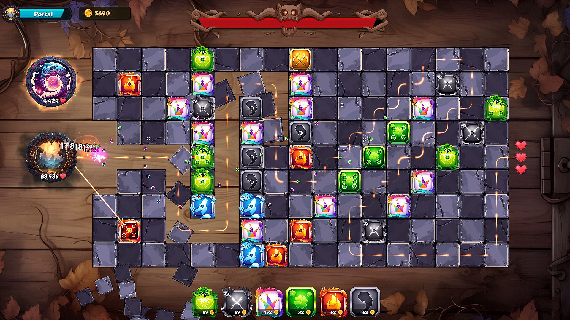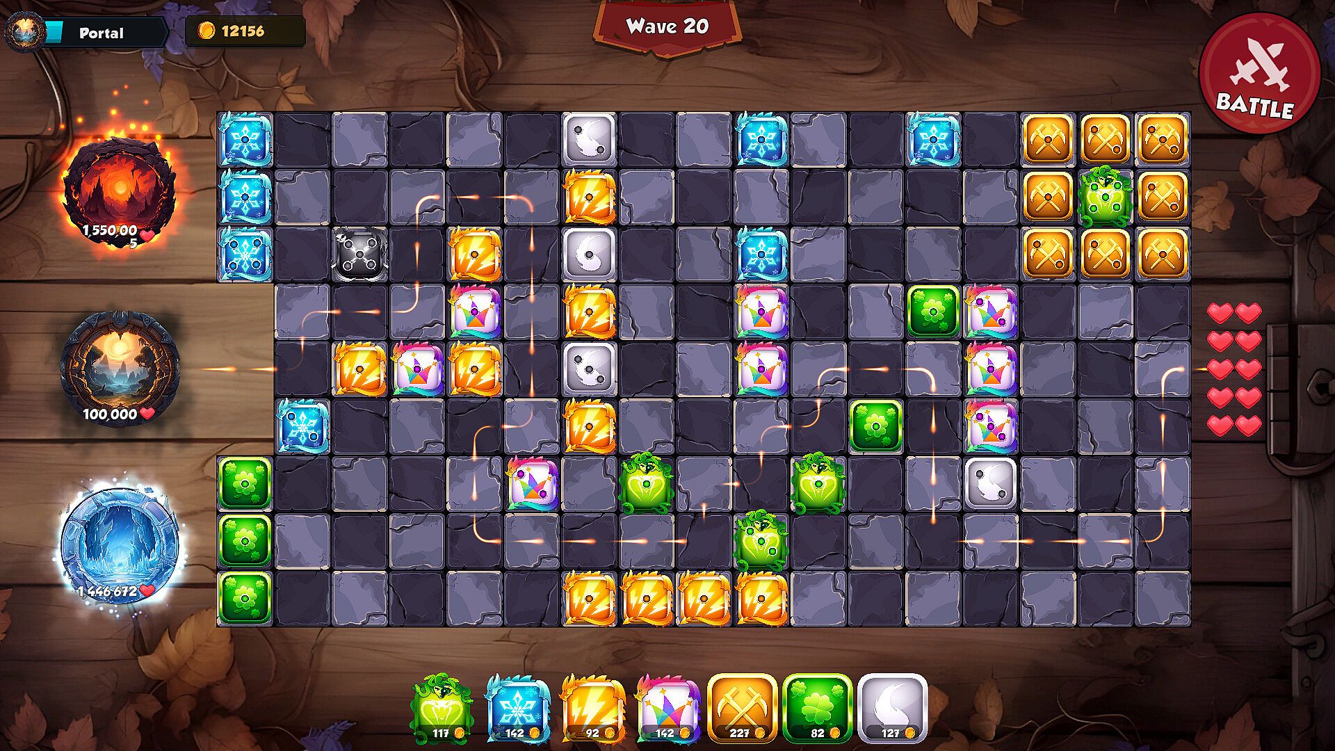 As you progress, new portals will unlock, each bringing fresh challenges and enemies. Stay on your toes, adapt your strategy, and demonstrate your mastery over the board as you strive to close all the portals and save the realm from impending doom.