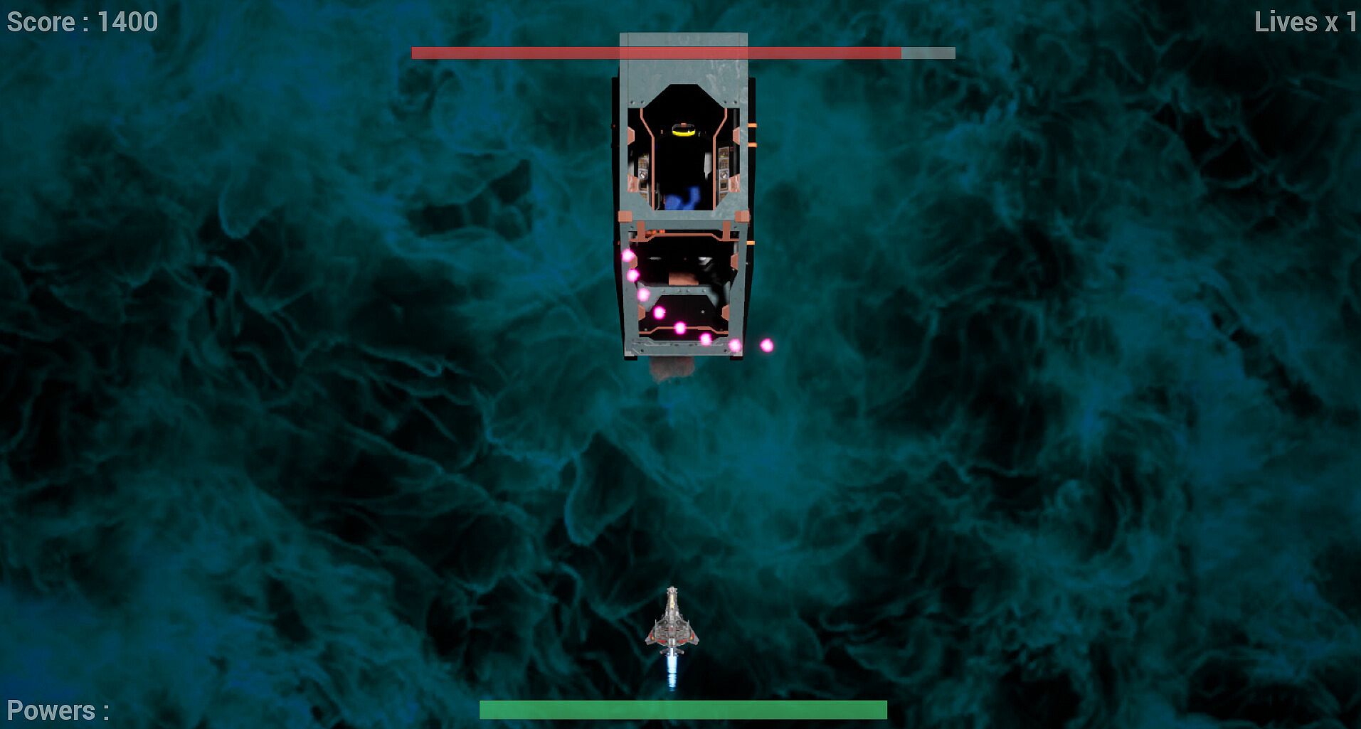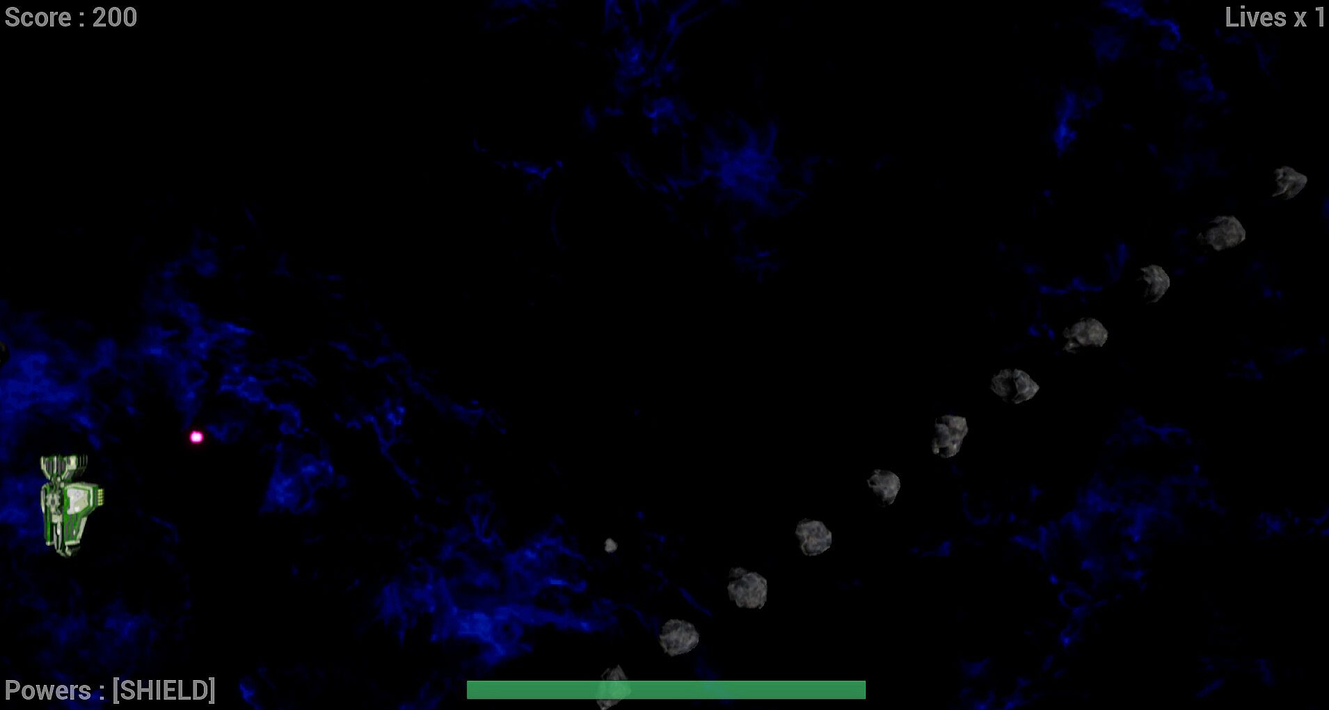2d space shooter with 6 levels. Player controls ship which have missiles and rockets. Every level player need avoid and destroy enemy ships which some have weapons. Also need avoid or shoot asteroid waves. End of every level has big boss who need to be defeated to finish level. Player has 3 lives at every level to survive.