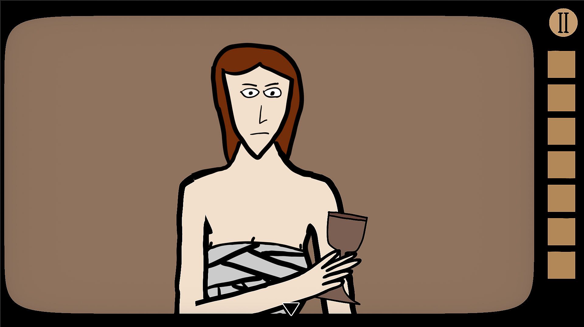 The Sink Gods utilises a simple and clean UI design that is easy to read. Use left, right, and down arrows on the edges of the screen to move around the various temples. Use the inventory on the right of the screen to inspect and use items you find!